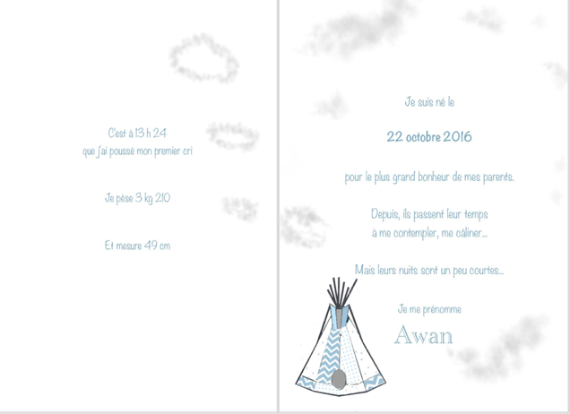 Nous pouvons, si vous le désirez, réaliser toute une gamme assortie à votre faire-part : remerciements, invitation à une cérémonie en l’honneur de bébé etc…