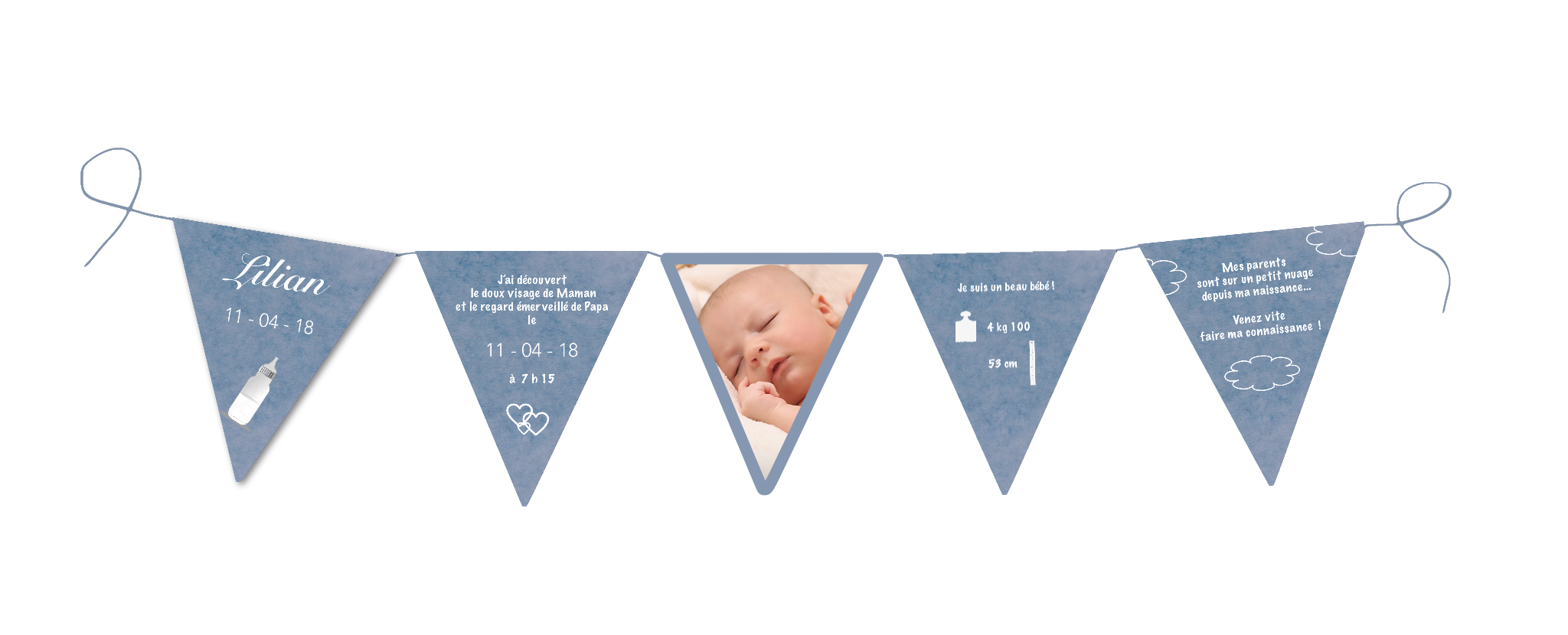Nous pouvons, si vous le désirez, réaliser toute une gamme assortie à votre faire-part : remerciements, invitation à une cérémonie en l’honneur de bébé etc…