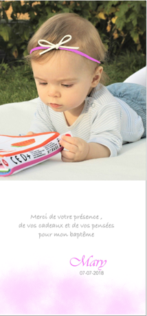 Nous pouvons, si vous le désirez, réaliser toute une gamme assortie à votre faire-part : remerciements, invitation à une cérémonie en l’honneur de bébé etc…