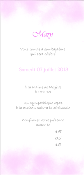 Référence : NDV171206250 MB - invitation bapteme - carte recto-verso