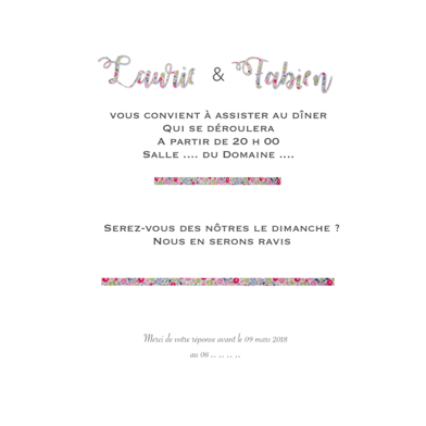 Nous pouvons, si vous le désirez, réaliser toute une gamme assortie à votre faire-part : coupon-réponse, livre de cérémonie, larmes de joie, plans de table, cartes de table,
