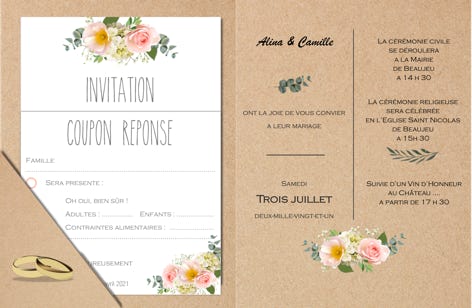 en passant par les coupons-réponse, livre de cérémonie, jusqu’aux moins courants : plan, réservation de chambres sur place, etc…